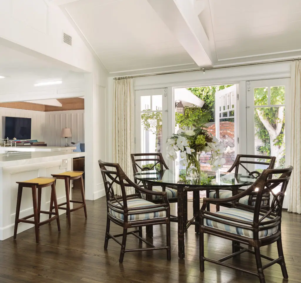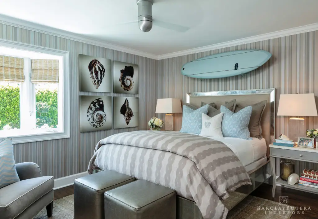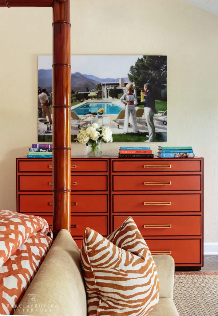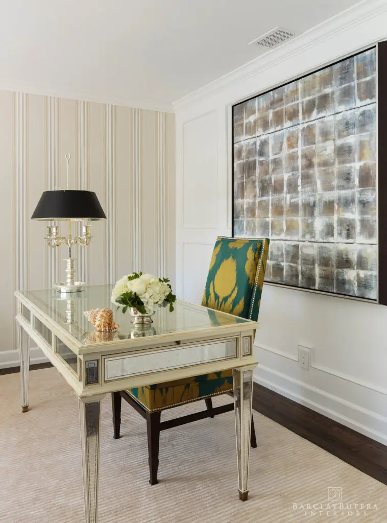 In an effort to embody my new “less is more” philosophy, I knocked down walls to open up the floor plan and replaced the bold blue-and-white color palette with one of soft, muted bluish-grey and neutral tones giving way to a lighter more harmonious atmosphere. In order to cultivate a contrast in the décor, I covered the floors with several thick textured rugs in subdued colors and painted the extensive moldings and wood millwork a crisp bright white. The existing furnishings and upholstery pieces were exchanged for ones that exhibited a balance of both modern and classic lines inviting a sense of comfort and relaxation. Applying a minimalist approach to the accessories, I kept to simple stacks of books and unembellished glass hurricanes however I still made a point to incorporate my signature animal prints throughout the home.